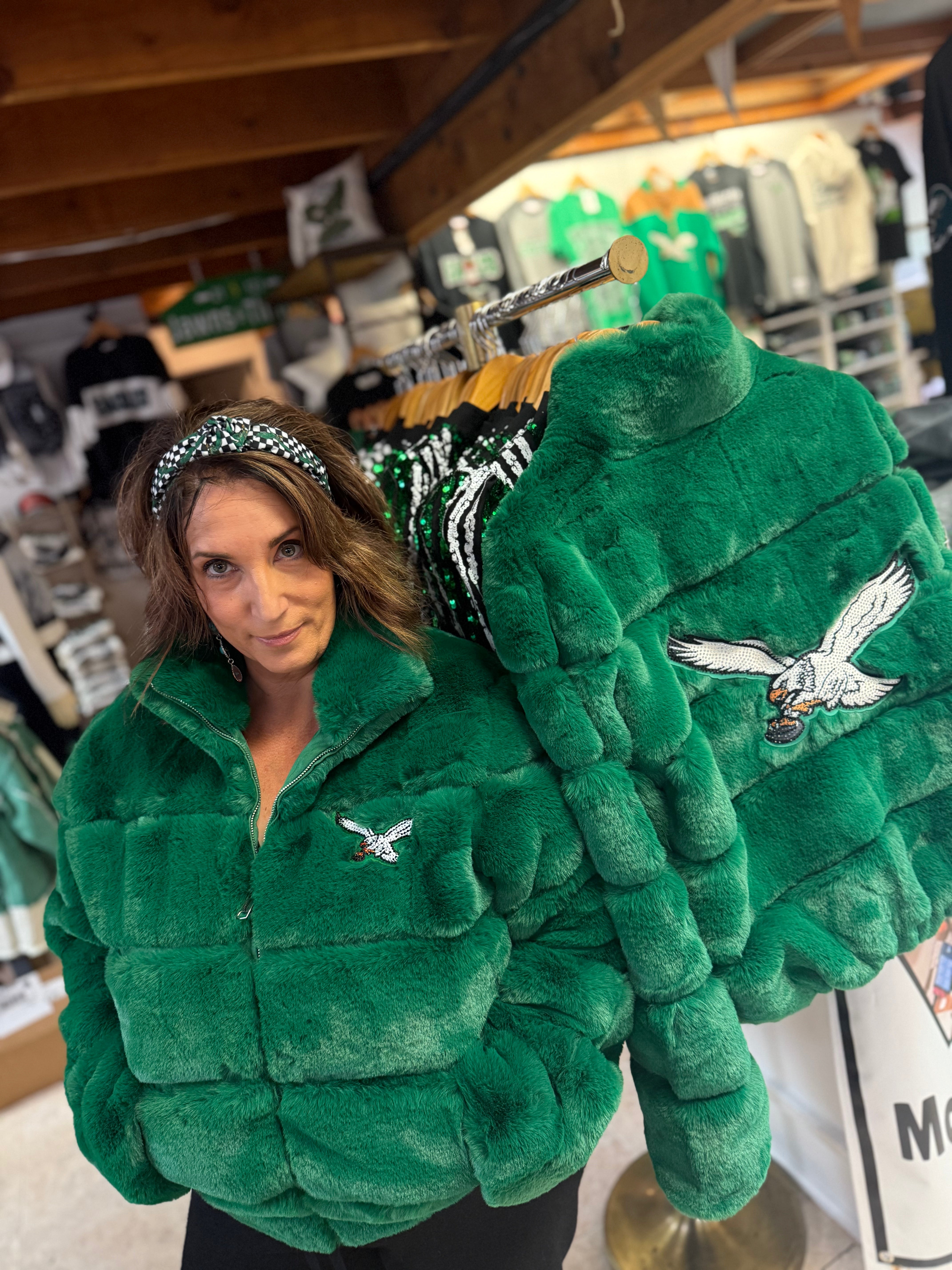 Ladies Eagles Cuce Bling Faux Fur Coat